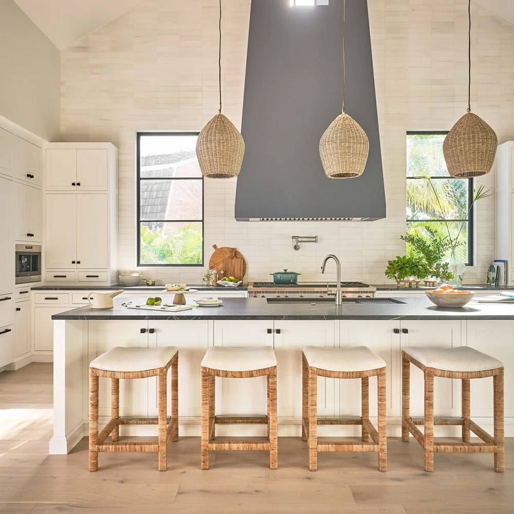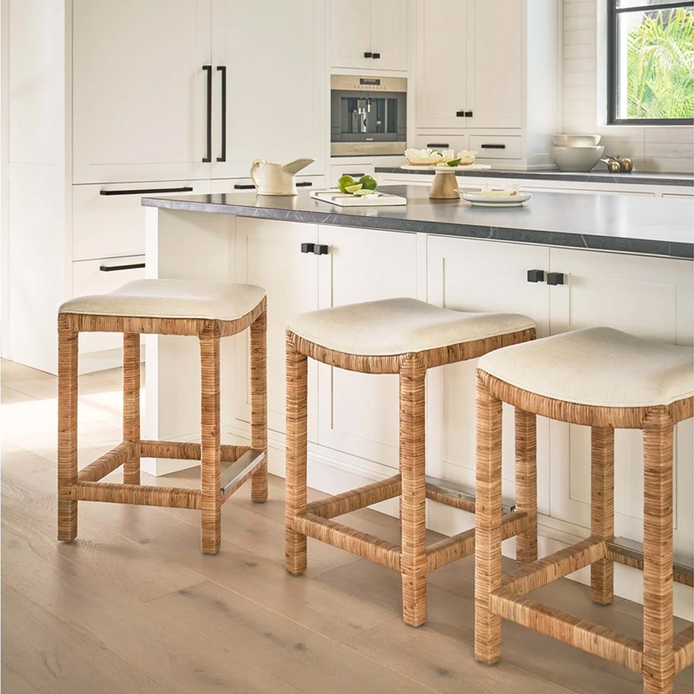 The ultimate expression of beachy-cool, the Sandbar Stools brings depth to interiors with its rattan body and offers additional comfort. Featuring a beautiful natural split rattan and a comfortable Nomad Snow fabric seat, with a seat height of 26 inches. Part of the Universal Furniture Weekender Coastal Living Home Collection, the Sandbar Console Stool is available now from Herman’s Furniture and Design.